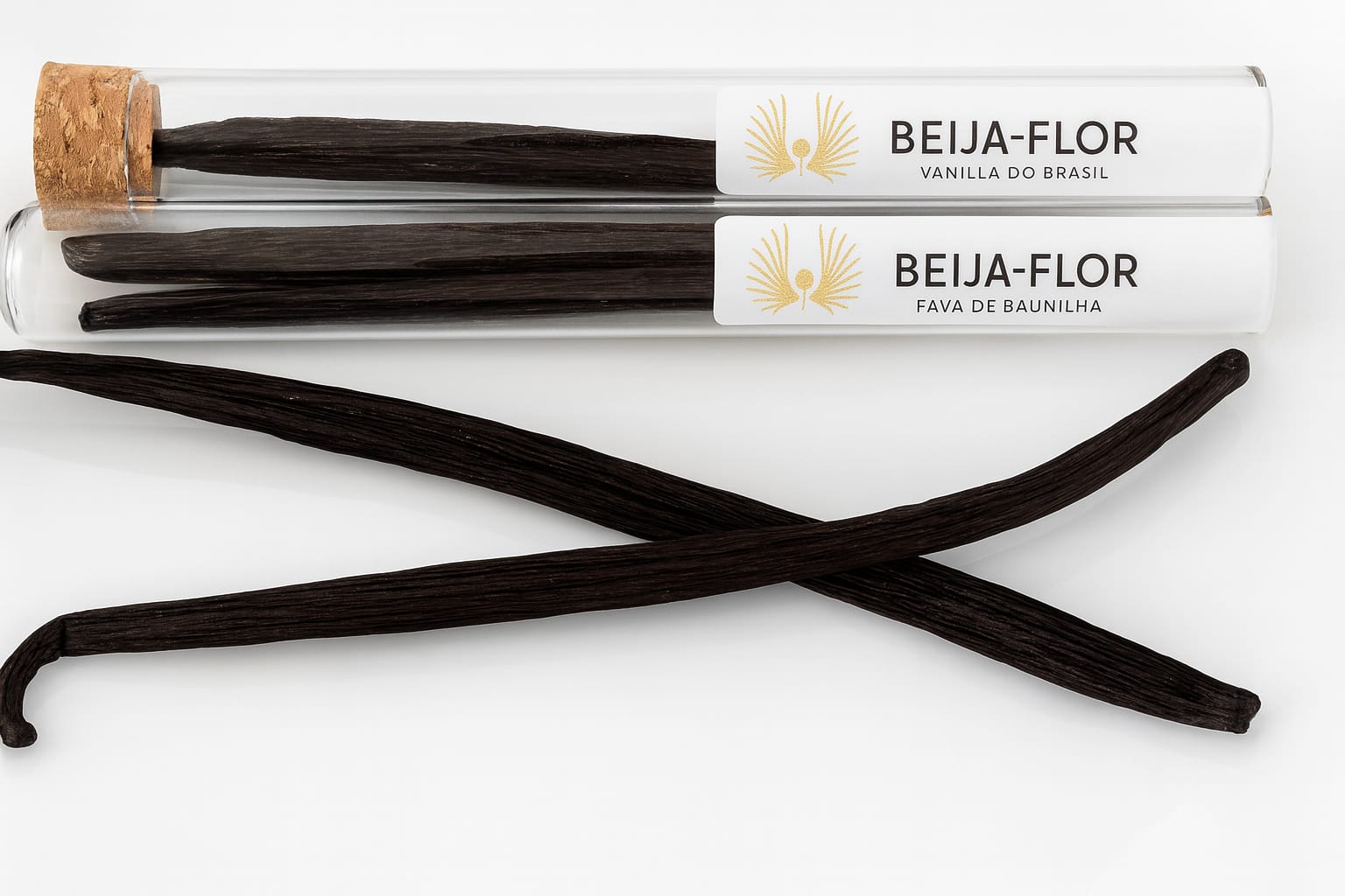 A Vanilla Beija-Flor do Brasil oferece uma baunilha de produção própria, cultivada, colhida e beneficiada nas terras da família, apresentada ao mercado nas formas de extrato, pasta e favas.