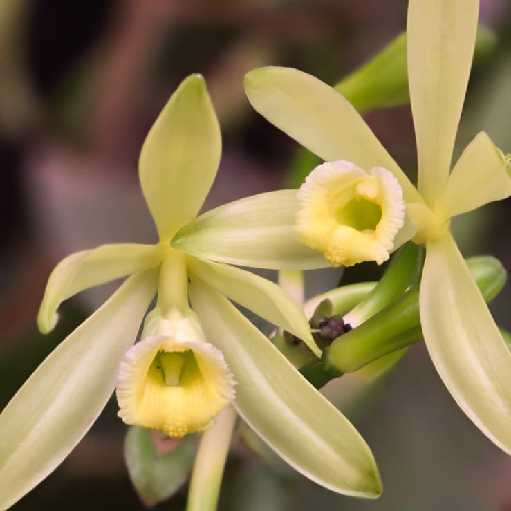 Nossa baunilha vem da orquídea Vanilla Planifolia, reconhecida mundialmente como a variedade que produz as melhores favas de baunilha. São maiores, mais aromáticas e saborosas.