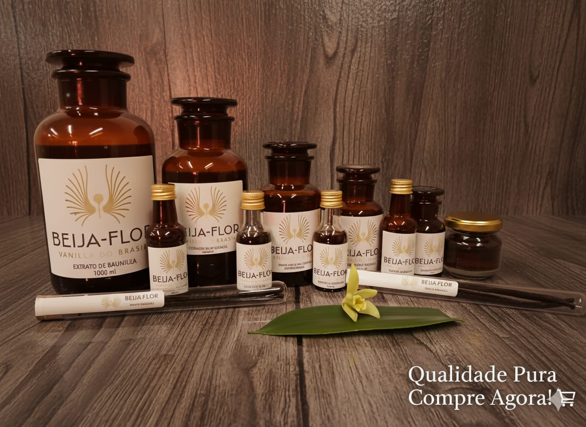 Além das favas, produzimos extratos naturais, elaborados com os mais altos padrões de qualidade, feitos apenas com ingredientes puros e um tempo de maceração prolongado. Nada de pressa: é o tempo que garante um extrato encorpado, com aroma verdadeiro e cheio de nuances. Ideal para quem quer transformar uma receita simples em algo especial. Seja nas favas ou nos extratos, o que oferecemos é baunilha de excelência — feita com carinho por uma família que acredita no valor do trabalho bem feito, com alma e com raiz.